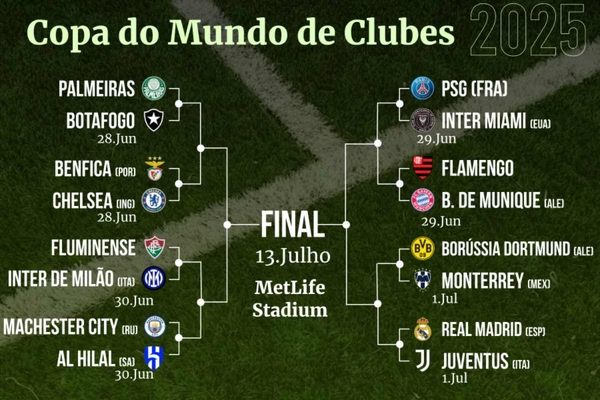 Encerrada a fase de grupos da Copa do Mundo de Clubes da Fifa, a competição entra na etapa de mata-mata a partir deste sábado (28/6), com a disputa das oitavas de final. Agora, as equipes passam a se enfrentar em uma única partida, que sacramenta a classificação ou a eliminação de cada um dos participantes.