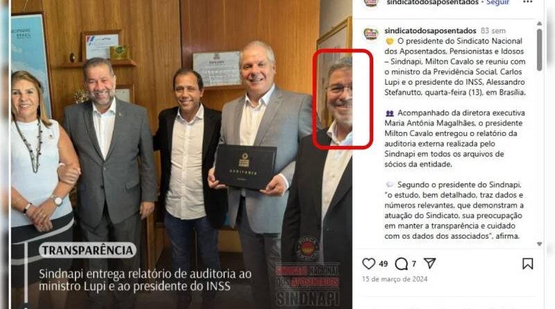 Luiz Lima exibiu ainda as fotos em que Moura aparece ao lado de Carlos Lupi, ex-ministro da Previdência, e Milton Cavalo, atual presidente do Sindnapi.