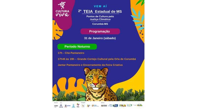 Com o tema “Pontos de Cultura pela Justiça Climática”, o Fórum Estadual dos Pontos de Cultura e a Teia Estadual de Mato Grosso do Sul serão realizados nos dias 30 e 31 de janeiro de 2026, em Corumbá (MS), na sede do Instituto Moinho Cultural Sul-Americano. O encontro integra a agenda nacional do Programa Cultura Viva e funciona como etapa preparatória para o V Fórum Nacional de Pontos de Cultura e para a 6ª Teia Nacional, que acontece em março, no Espírito Santo.