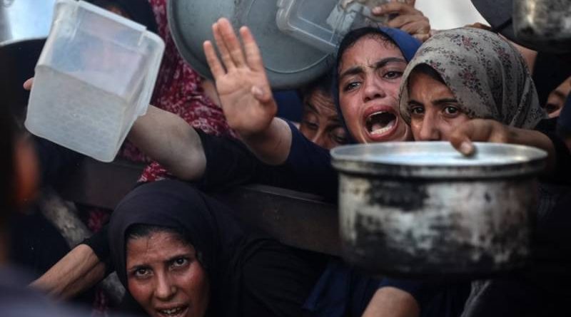 Também foi nesse domingo que o total de mortes por fome subiu para 175, das quais 93 eram crianças. Em julho, mais pessoas morreram de fome do que nos últimos 20 meses combinados, afirmam autoridades de saúde palestinas.