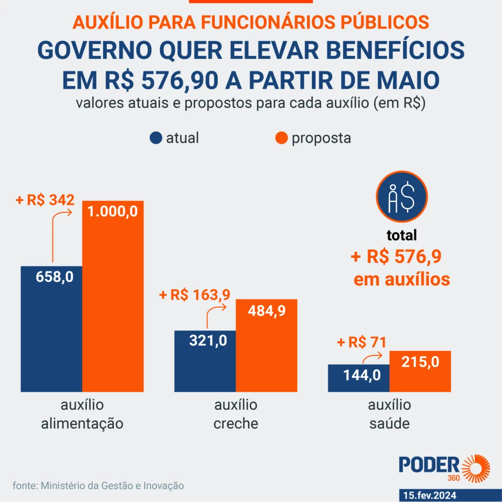 O governo também propôs um aumento dos auxílios (creche, saúde e alimentação) aos funcionários públicos.
