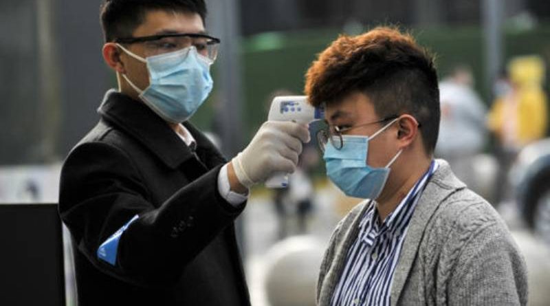 Chengdu/China-Feb.2020: New type coronavirus pneumonia in Wuhan has been spreading into many cities in China. Wearing masks, people lined up for temperature checks before entering the Chunxi Road, downtown mall in Chengdu,China,which is Chengdu’s most famous shopping street and has numerous stores for shopping.© caoyu36/istock