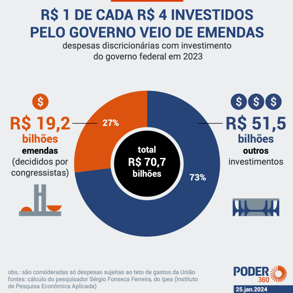 Ou seja, os congressistas escolheram o destino de R$ 1 de cada R$ 4 investidos com dinheiro do governo federal em 2023.