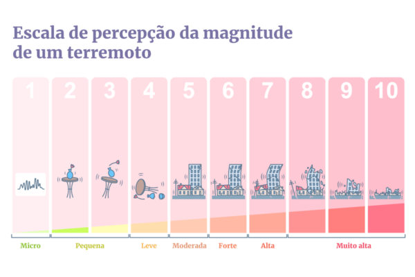 O território da Polinésia Francesa também emitiu alerta de tsunami nesta quarta, com ondas previstas entre 1,10 e 2,20 metros. Veja abaixo a escala de percepção da magnitude do terremoto.