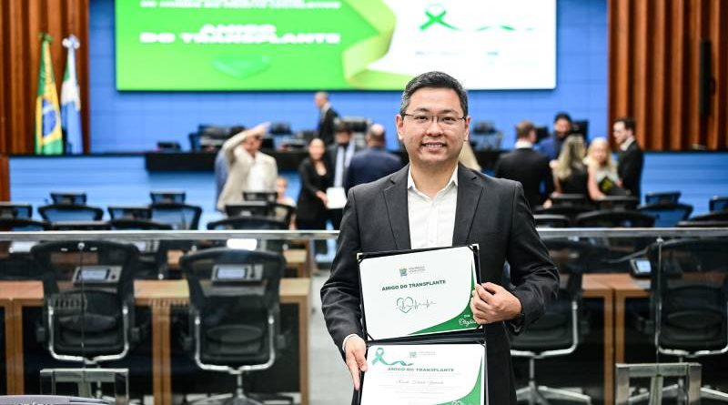 responsável pelo Transplante de Medula Óssea do Hospital Cassems de Campo Grande, Renato Yamada, recebeu, na noite desta segunda-feira (22), em sessão solene realizada no Plenário Júlio Maia, na Assembleia Legislativa de Mato Grosso do Sul, o diploma de Honra ao Mérito Legislativo Amigo do Transplante.