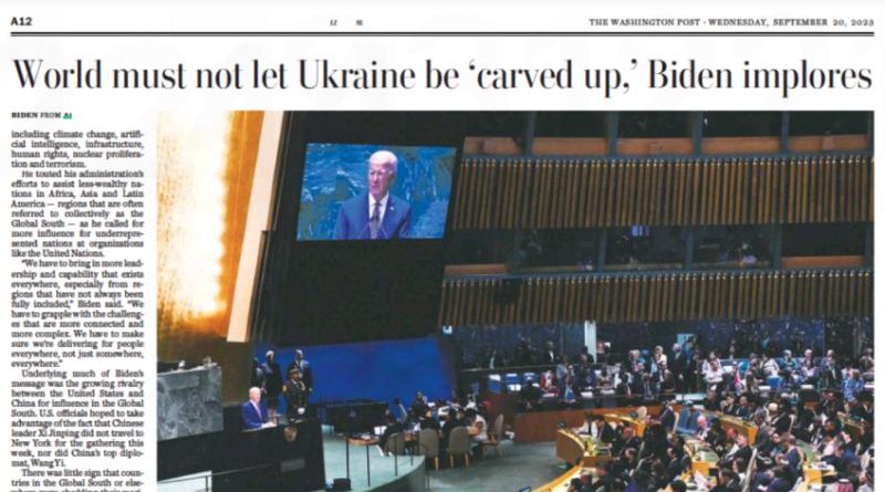 - The Wall Street Journal (EUA) – zero menção a Lula ou ao Brasil. A publicação destaca a ausência de muitos líderes –cita China, França, Índia, Rússia e Reino Unido.