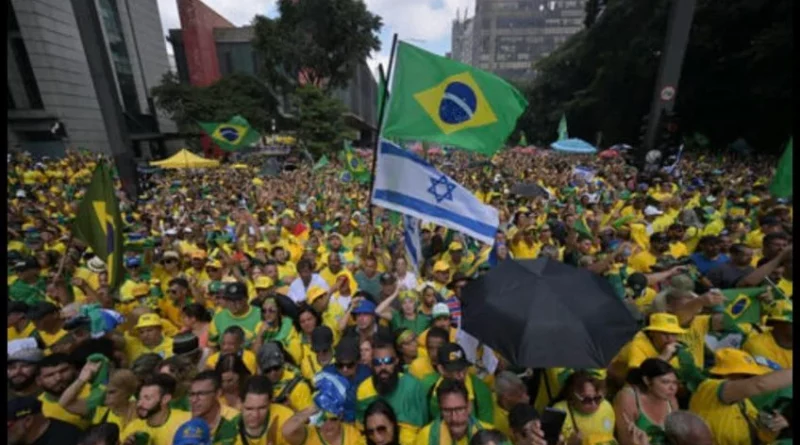 Israel Katz publicou imagem da manifestação na av. Paulista que mostra a bandeira do Brasil e de Israel juntas
