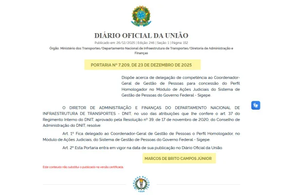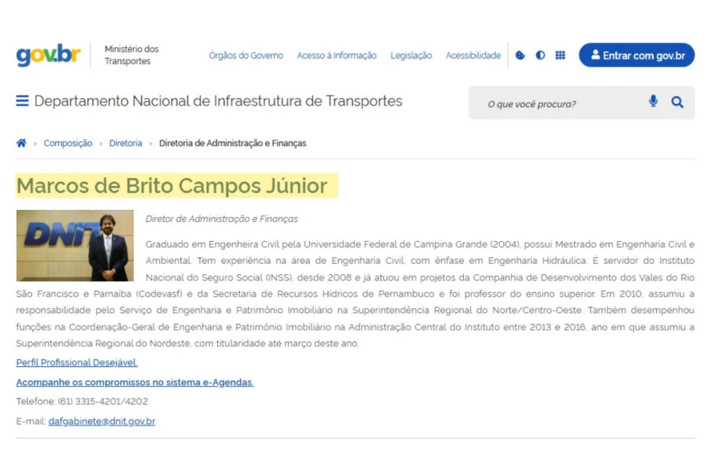 A coluna buscou contato com Marcos por meio de seu gabinete, mas foi informada de que o servidor está de férias e retornará a Brasília no dia 20 de janeiro. O Dnit também foi procurado. A coluna aguarda manifestação.