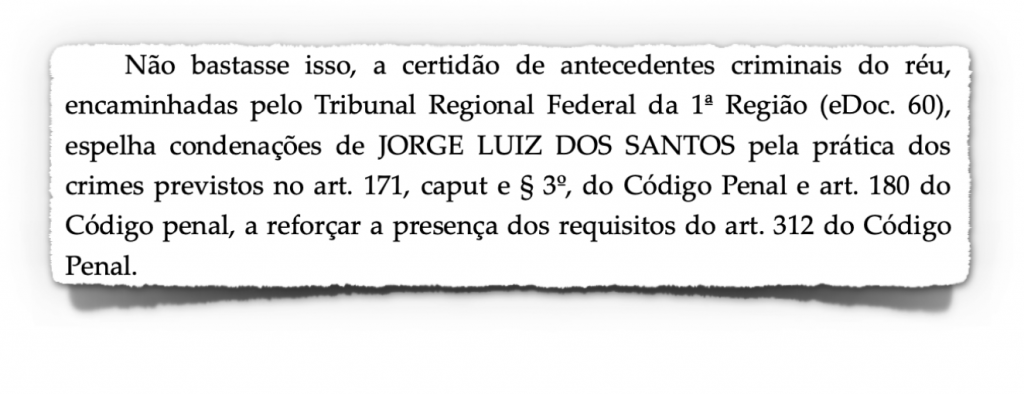 Moraes havia negado, em 15 de dezembro de 2023, o pedido de soltura da defesa do Jorge Luis. O ministro citou na decisão as condenações do homônimo por estelionato e receptação.