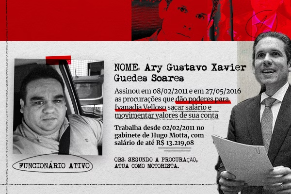 Das 10 pessoas que cederam procurações desde 2011, duas permanecem nomeadas como secretários parlamentares no gabinete de Hugo Motta. São eles: Ary Gustavo Xavier Guedes Soares e Jane Costa Gorgônio.