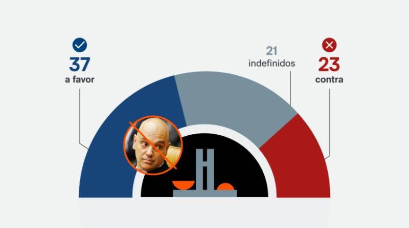 Dados compilados pelo site “votossenadores.com.br” e pelo Poder360 mostram que 37 senadores são a favor do impeachment do ministro do STF (Supremo Tribunal Federal) Alexandre de Moraes. Outros 23 são contra e 21 não têm uma posição definida.