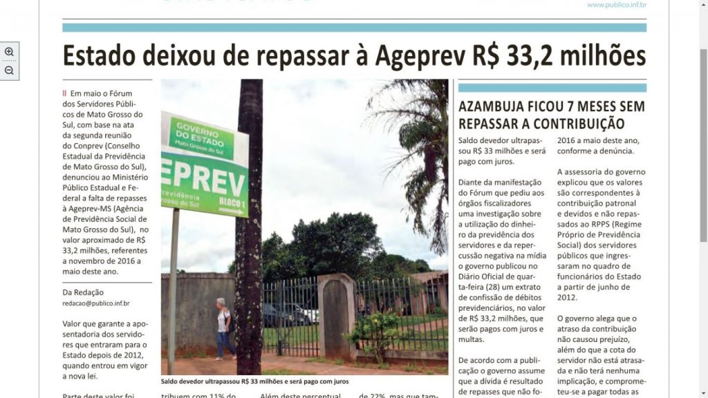 Em 2017, o Fórum dos Servidores Públicos de Mato Grosso do Sul, com base na ata da reunião do Comprev (Conselho Estadual da Previdência de MS) denunciou ao Ministério Público Estadual e Federal a falta de repasses à Ageprev-MS (Agência de Previdência Social de MS) no valor aproximado de R$ 33,2 milhões, referentes a novembro de 2016 a maio de 2017.
