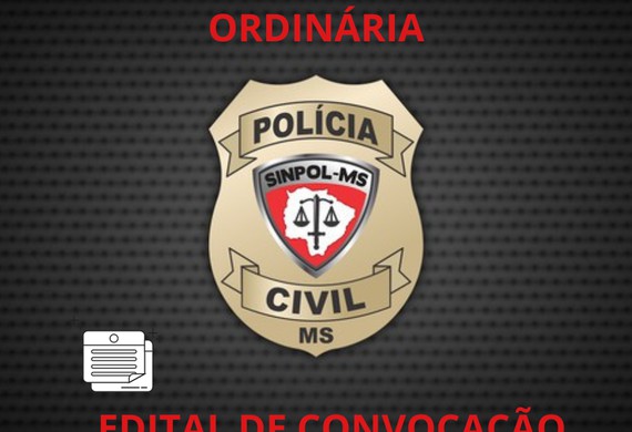 O SINDICATO DOS POLICIAIS CIVIS DO ESTADO DE MATO GROSSO DO SUL – SINPOL/MS, inscrito no CNPJ sob nº 01.105.436/0001-08, com registro sindical sob o número 24000.004233/91-13-MTE, CONVOCA seus os filiados para ASSEMBLEIA GERAL ORDINÁRIA a realizar-se no dia 12 de dezembro de 2023 (terça-feira), às 10:00 horas, em PRIMEIRA CONVOCAÇÃO, na sede do sindicato, na Rua Teodoro de Carvalho, 225, Bairro José Abrão – Campo Grande-MS, servindo esse instrumento para a convocação para nova assembléia, em SEGUNDA CONVOCAÇÃO, caso não atingido o quórum da maioria absoluta dos filiados em dia com as suas obrigações estatutárias, para o mesmo dia (12/12/2023) e local, às 10:30 horas, nos termos do artigo 14, alínea “b” c/c o § 1º do artigo 11, também do Estatuto Social, para deliberarem sobre a seguinte pauta: