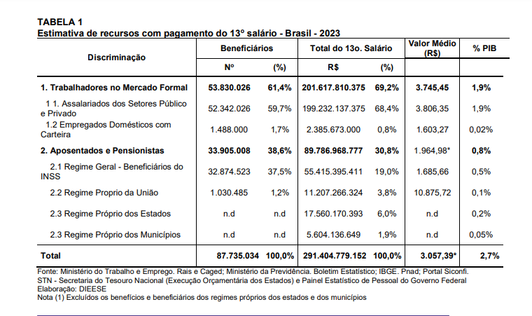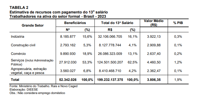 Para o cálculo do impacto do pagamento do 13º salário, o DIEESE não leva em conta