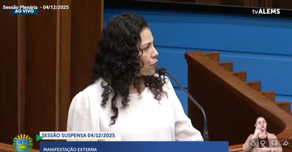 Ana Cláudia Gomes, coordenadora do Fórum, usou a tribuna da ALEMS para alertar sobre o risco imediato da proposta que “destrói a estabilidade” e abre caminho para o “aparelhamento político”