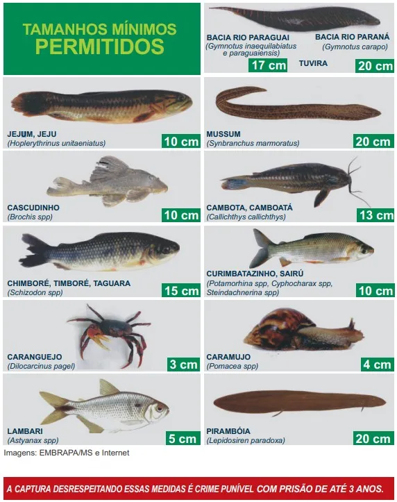 O documento traz informações importantes, como locais onde é proibida a pesca, apesar da liberação no Estado: “a pesca nesses rios e locais é crime”, adverte trecho da cartilha, apontando os rios Salobra, da Prata, Nioaque, Formoso e Mimoso como dentro da proibição, além do Córrego Azul e trechos de rios nas unidades de Conservação de Proteção Integral existentes em Mato Grosso do Sul.