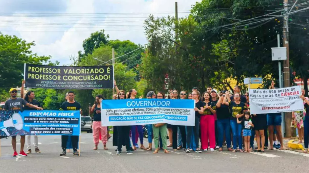 No Hemosul da Avenida Fernando Corrêa da Costa, a categoria estava mobilizada com camisetas e faixas. Um dos envolvidos na manifestação, Wagner Castilho, explica que a expectativa seria de um chamamento para janeiro de professores da educação infantil e ensino fundamental, contudo, não há previsões. Um dos editais tem prazo até 2026, podendo ser prorrogado.