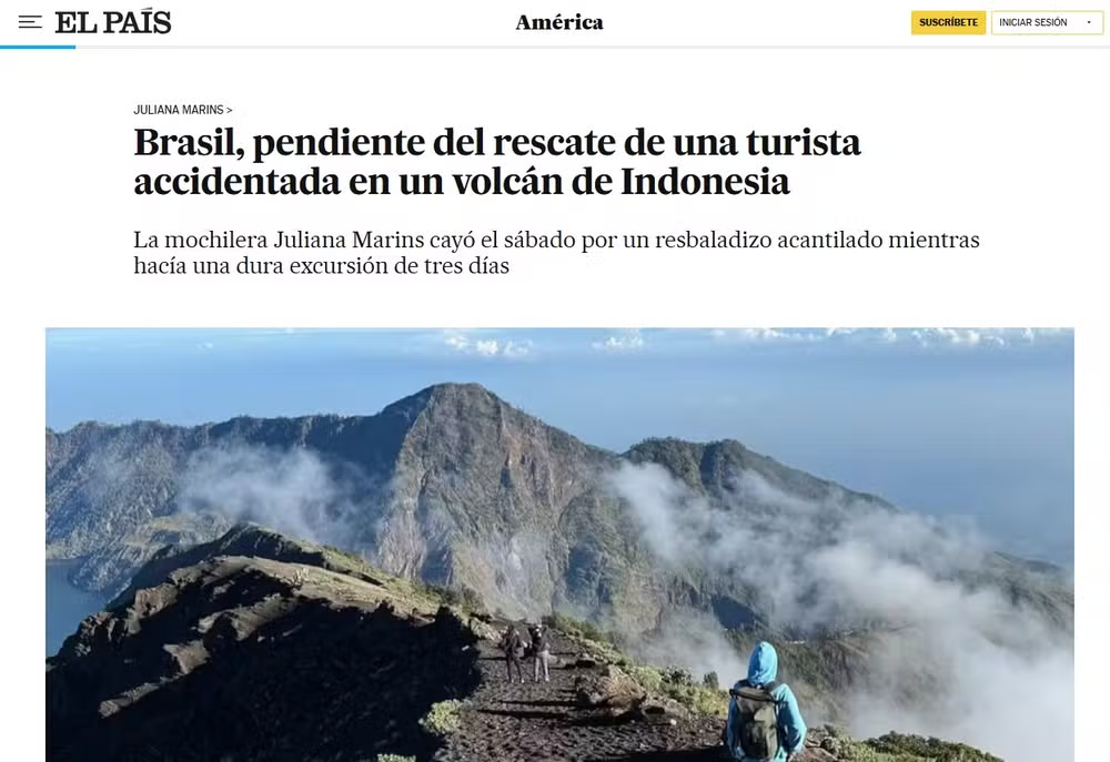 Na espanha, o jornal “El País” destacou a “difícil caminhada de três dias” de Juliana e as críticas às autoridades indonésias.