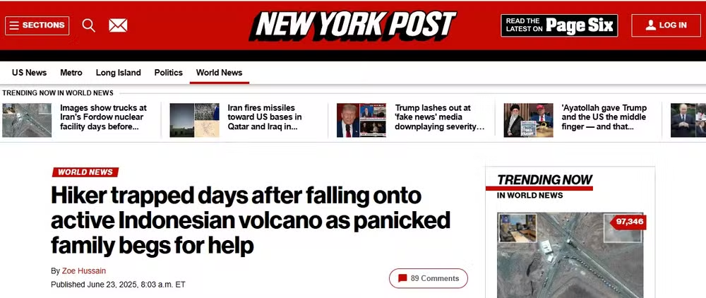 O caso da brasileira Juliana Marins, que caiu no vulcão do Monte Rinjani, na Indonésia, repercutiu na em veículos da imprensa internacional nesta segunda-feira (23/6). Nesta manhã, autoridades do país apontaram que ela foi monitorada “com sucesso por um drone” e permanece presa em um penhasco rochoso a uma profundidade de cerca de 500 metros, “visualmente imóvel”.