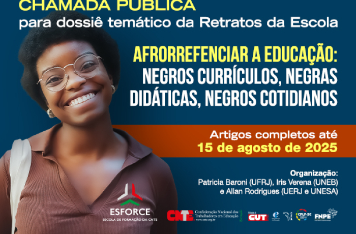 A terceira edição de 2025 da Retratos da Escola (volume 19, número 45) terá como tema Afrorrefenciar a Educação: negros currículos, negras didáticas, negros cotidianos sob organização de Patricia Baroni (UFRJ), Iris Verena (UNEB) e Allan Rodrigues (UERJ e UNESA).