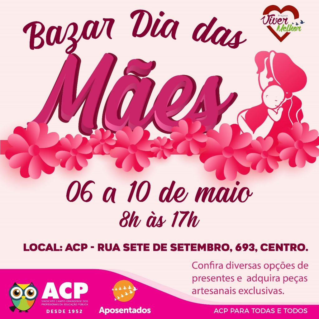 Organizado e realizado pela Secretaria dos Aposentados da ACP, o Bazar do Dia das Mães tem entrada gratuita, com exposição de peças artesanais, itens exclusivos de decoração, alimentação e moda, para todos os gostos e estilos.