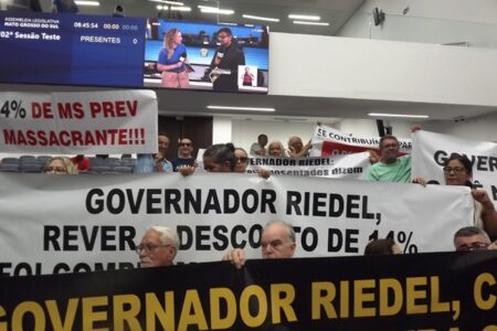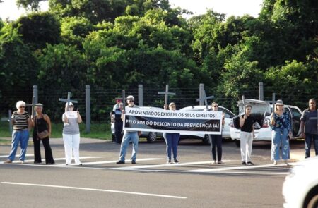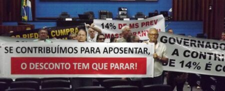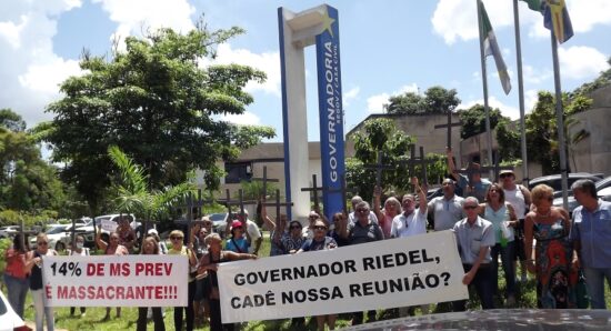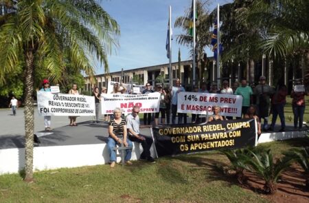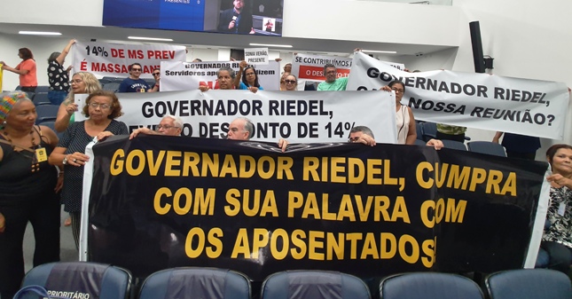 Aposentado importa! Aposentado vota! E sua família também! Com essas “palavras de ordem” servidores aposentados voltaram a se manifestar em Campo Grande contra o desconto de 14% nas aposentadorias e pensões. O movimento começou na entrada do Parque dos Poderes, prosseguiu na Assembleia Legislativa e terminou na Governadoria, onde dois representantes foram recebidos pelos secretários Eduardo Rocha e João Mattogrosso, que afirmaram já existirem propostas formatadas sobre a questão e que serão apresentadas em reunião com comissão de parlamentares e servidores.