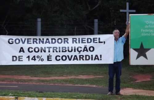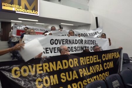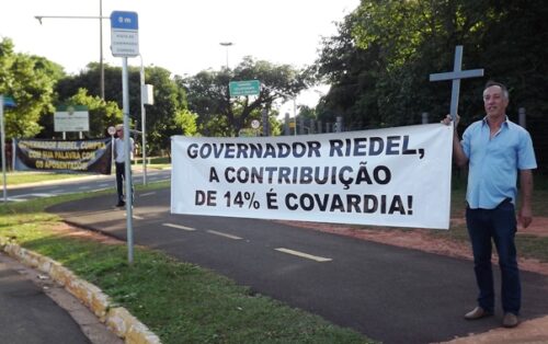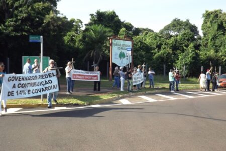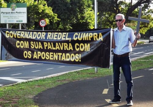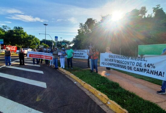 Servidores aposentados voltam a protestar no Parque dos Poderes pela revisão do desconto de 14%