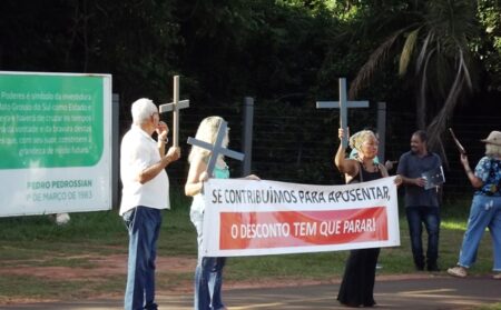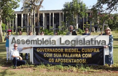 O movimento dos aposentados, no dia 27 de fevereiro, começou cedo. À partir das 6:30 horas um grupo já estava concentrado na entrada do Parque dos Poderes, próximo à Agência de Previdência Estadual de Mato Grosso do Sul (Ageprev). Com faixas e cruzes o objetivo era chamar a atenção dos servidores da ativa que chegavam ao trabalho, e que também foram atingidos pelo desconto efetivado com a reforma da previdência, no governo Azambuja. Foram muitas as manifestações de apoio feitas pelos servidores que passavam pelo local, com acenos e buzina dos carros. O movimento contou com a adesão de servidores de Aquidauana e Paranaíba.