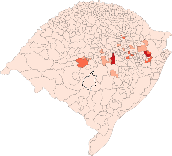 Os municípios com mais mortes são Gramado e Santa Cruz do Sul. Veja na tabela abaixo quantos registros cada município do estado possui: