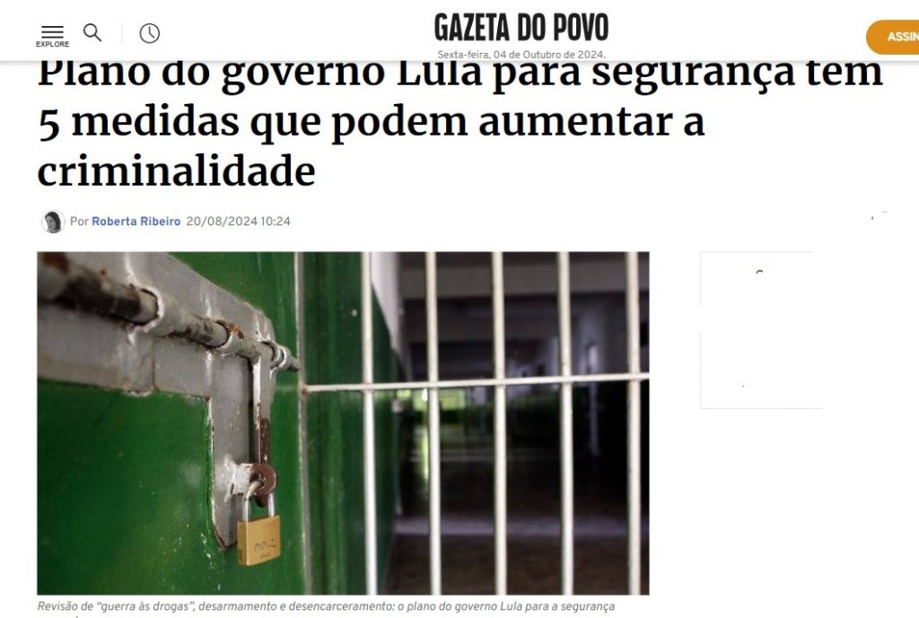 Aumento da criminalidade – “Os indicadores de segurança vem aumentando desde o início de 2023 por conta de discursos equivocados, indevidos, inapropriados que fazem com que as pessoas pensem que o criminoso é uma vítima dessa estrutura social que nós vivemos e que precisa diminuir as penas em relação a eles e desencarcerar”.