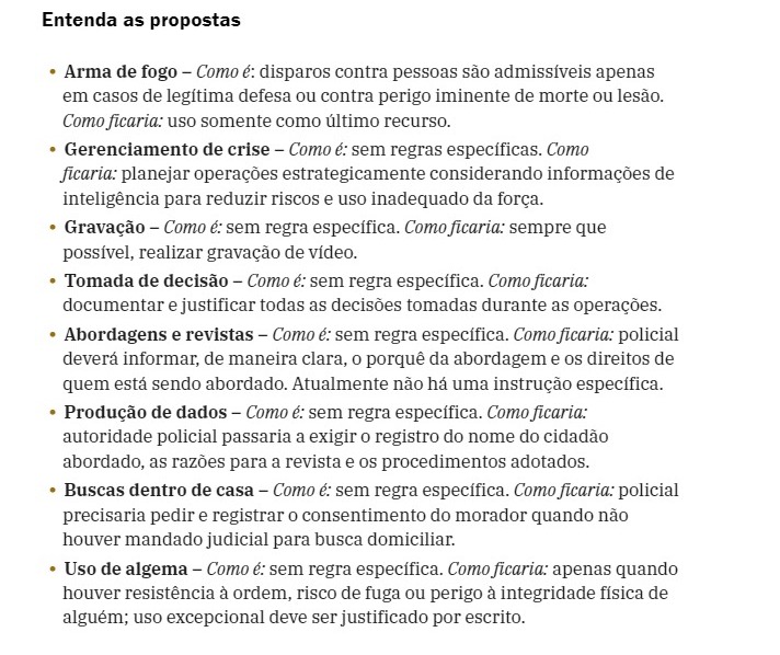 A nova diretriz que está sendo debatida pelo governo federal visa alterar uma portaria de 2010 para limitar as circunstâncias em que alguém pode ser revistado e exigir justificativas mais claras para as abordagens. Se aprovadas, as regras valerão tanto para as polícias militar e civil quanto para as guardas municipais.