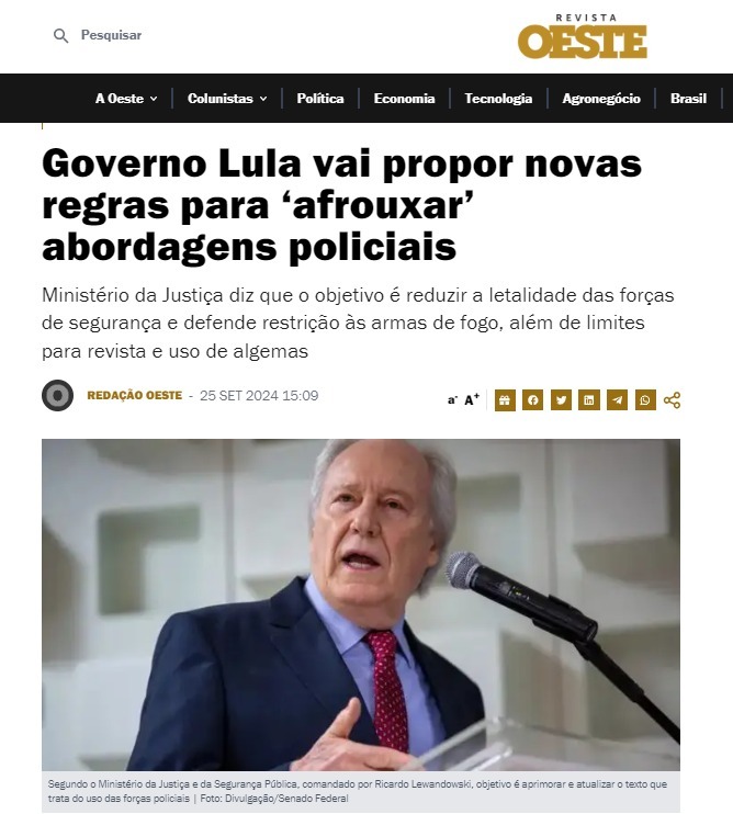 Capa da notícia sobre as abordagens – Reprodução: Revista Oeste