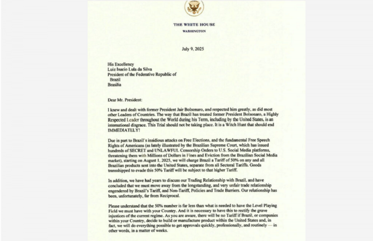 A carta intensifica a tensão diplomática entre os dois países em um momento de crescente instabilidade geopolítica e de polarização eleitoral nos Estados Unidos. Até o momento, o governo brasileiro não se pronunciou oficialmente sobre o conteúdo da mensagem nem sobre as possíveis consequências da nova medida tarifária.