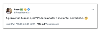 Nas redes sociais, as opiniões variam. Parte dos internautas expressaram indignação com a abordagem da juíza, ao afirmar que ela “poderia adotar o meliante logo”. Outro grupo elogia o trabalho da magistrada e questiona: “É errado ser humano agora?”