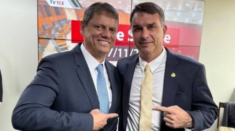 Governador de São Paulo, Tarcísio de Freitas, e senador Flávio Bolsonaro/Foto: Reprodução via X
