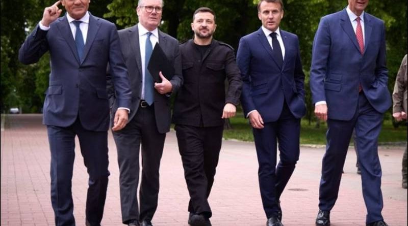 A demanda por um cessar-fogo de 30 dias foi apresentada nesse sábado, durante uma visita a Kiev pelos líderes da Grã-Bretanha, França, Alemanha e Polônia (foto em destaque), que, juntamente com Zelensky, telefonaram para o presidente dos EUA, Donald Trump, antes de uma coletiva de imprensa conjunta.