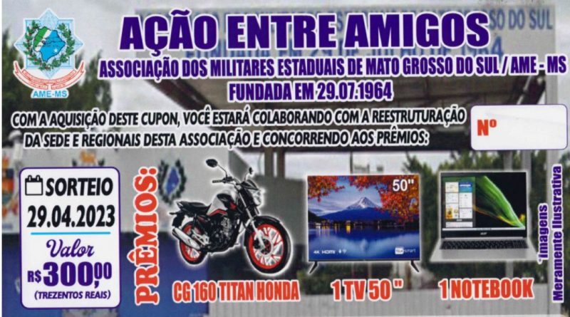 A Associação dos Militares Estaduais de Mato Grosso do Sul (AME-MS) realizou no último sábado (29) de setembro de 2023, o sorteio da Ação entre Amigos com o objetivo de angariar fundos para a reestruturação da sede e das regionais.