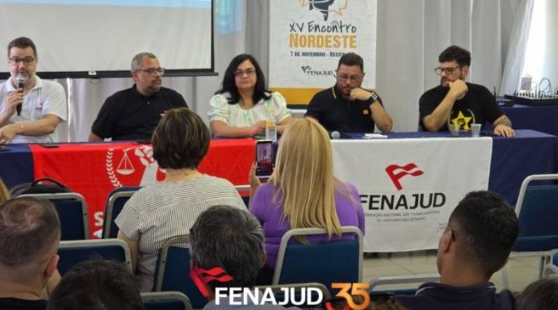 A Fenajud realizou o XV Encontro Nordeste em Recife (PE), nesta quinta-feira, 07 de novembro, onde reuniu sindicatos filiados de diversos estados para fortalecer a luta em defesa dos trabalhadores do Judiciário estadual. O Sindjud-PE é o sindicato parceiro na realização dessa atividade. O evento, que marca o primeiro grande encontro promovido pela nova gestão da Federação, eleita em julho, contou com uma programação importante de palestra e debates.